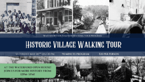 Commemorate this moment here and beyond with the Waterford Foundation! Check out the calendar below for events- from craft classes to diving deep into the history of the Village- there’s something for everyone.