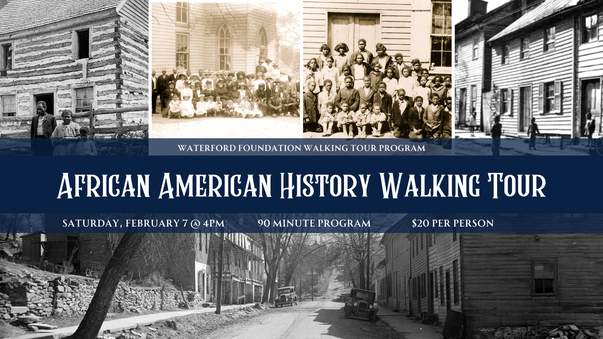 This month’s tour theme is Black history. By 1830, one in four households in Waterford were headed by free Blacks. During the tour, you will be able to hear the stories of the families who lived here and helped build Waterford into the place we know today; while experiencing their surroundings and exploring buildings including the Second Street School and John Wesley Community Church.