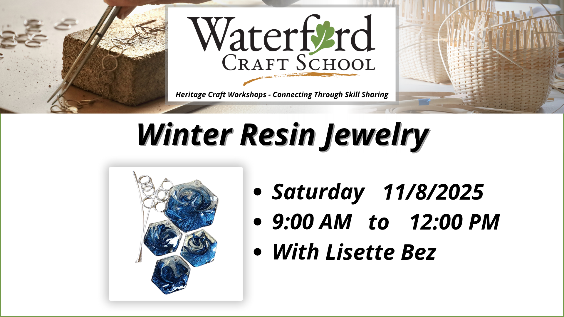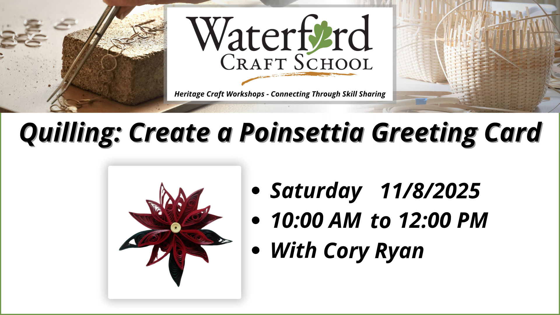 Waterford Old School 40222 Fairfax St, Waterford, VACreate delicate lace ornaments using traditional bobbin lace techniques. Learn basic stitches while crafting an elegant design finished with a bead—perfect for holiday décor or gifts.