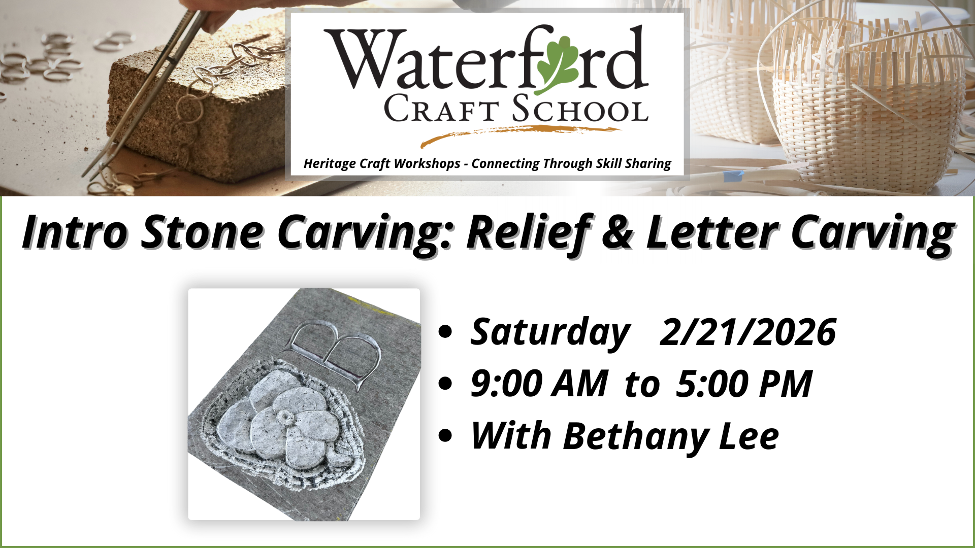 Learn traditional stone carving using hand tools through guided exercises with the three main chisels. Students will create a simple relief carving in limestone, then explore letter design and carve […]