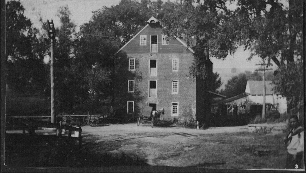 Amos Janney died in 1747, leaving his estate to his sixteen-year-old son Mahlon. Within a few years young Mahlon replaced the original log mill with a new two-story structure of wood and stone. This second mill was erected on the site of the present brick mill. The county began to build and improve local roads to facilitate the movement of goods to and from Janney’s Mill and, by the time Francis Hague died in 1780, the tiny village had begun to grow rapidly. Amos’s cousin Joseph Janney bought 12 acres from Hague’s estate and promptly laid out 15 lots on the south side of Main Street from the mill almost to the site of the present post office. Shops and dwellings soon followed, and sometime in the 1790s the growing village was renamed “Waterford.”