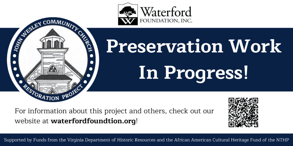 Thank you for your support of the John Wesley Community Church Restoration Project, and the Waterford National Historic Landmark. Make sure to keep checking this page for updates, or follow along on social media! You can find the Waterford Foundation on Facebook or Instagram