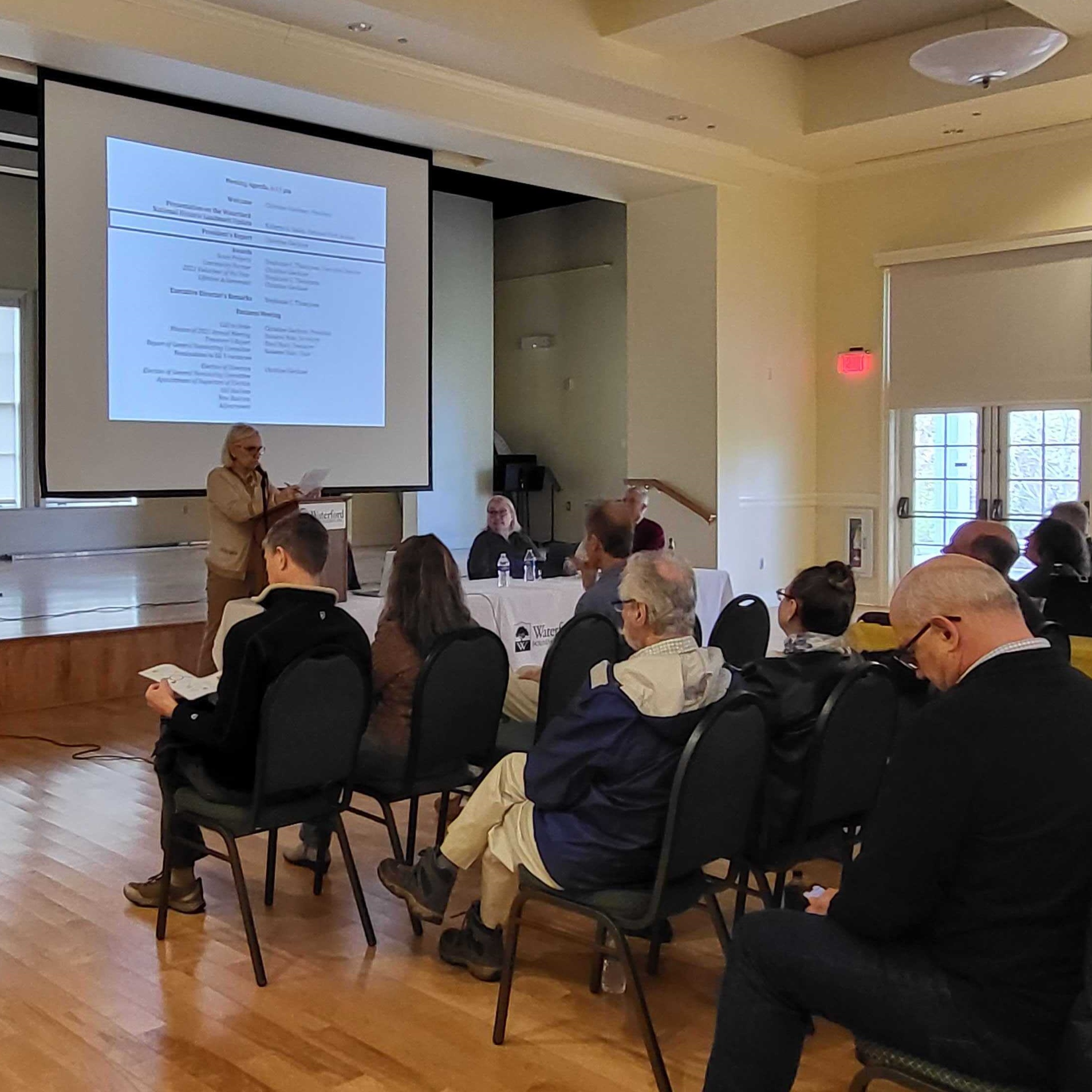 We were pleased to welcome so many members and guests to our 2022 Annual Meeting on April 19, 2022. The evening included a presentation by Kathryn Smith of the National Park Service about the study to update Waterford’s National Historic Landmark designation. Find more information about the update and links to the documents on our website. President Chris Gleckner, Executive Director Stephanie Thompson, and Treasurer Dave Hunt provided reports on the state of the organization. Much of this information can be found in our Annual Report, available in pdf form here, or hardcopy at our offices in the Old School. Please see the letters below from our Executive Director Stephanie Thompson and new President of the Board, Susan Manch.